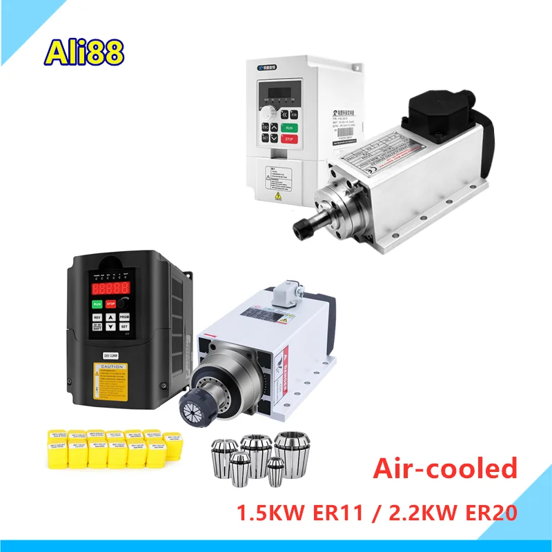 Deal 1.5kw/2.2KW Air-cooled spindle Motor kit 1500W/2200W Motor+110V/220V VFD/Inverter for CNC Engraving Milling Machine